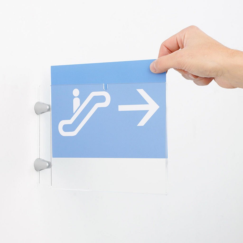 La segnaletica a bandiera in plexiglass della linea Plexi è una soluzione moderna ed elegante per l’esposizione di targhe informative e direzionali. Grazie alla configurazione a bandiera, la segnaletica è visibile da più angolazioni, migliorando l’orientamento negli spazi interni ed esterni.